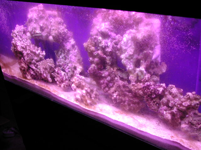 Live rock will serve not only as a home for the fish and a decoration to the tank, but more importantly, as one of the primary means of filtration. Adding this element will immediately start the initial cycling of the tank. I've discovered that I'll need approximately a total of 35-40lbs of rock, of which I've used half Marshall Islands rock and half Fiji Islands rock. The mixture gives the tank a cool look.